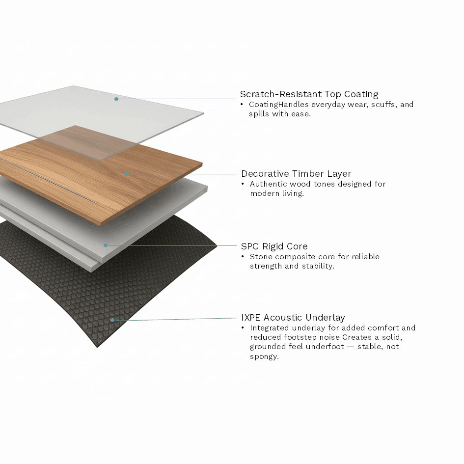 With Stone™ technology, Hybrid Plus stays temperature stable. It is also ideal for homes with big dogs, heavy furniture, or high everyday use.
