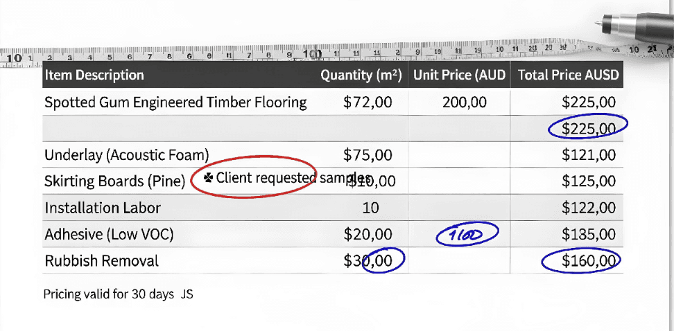 Flooring costs typically include per-square-meter installation, scotia or skirting (charged per meter or per m²), and, if needed, leveling compound. Additional charges may apply for removing old floors (tile, carpet, vinyl, or timber), waste disposal, and any hidden or optional fees depending on site conditions.