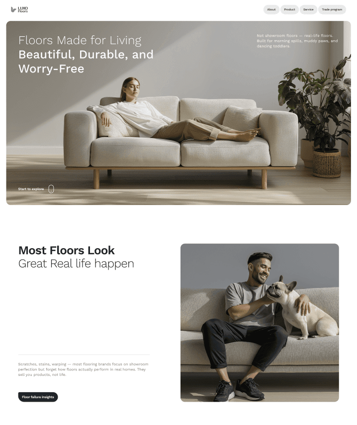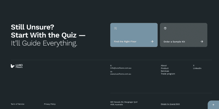 Clearly guides users while showcasing LUXO's expertise.
